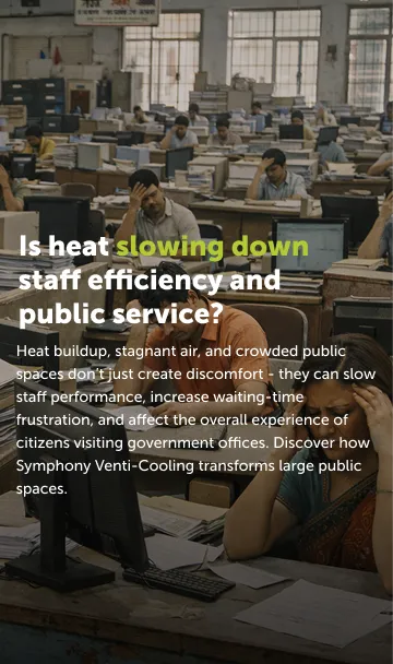 Providing a safe, breathable environment in high-traffic government buildings is no longer optional; it's a standard. Symphony’s Venti-Cooling technology addresses the specific challenges of large-volume spaces where traditional AC is unfeasible. By ensuring 100% fresh air displacement, we are not just cooling spaces; we are improving the quality of public service delivery across the nation.